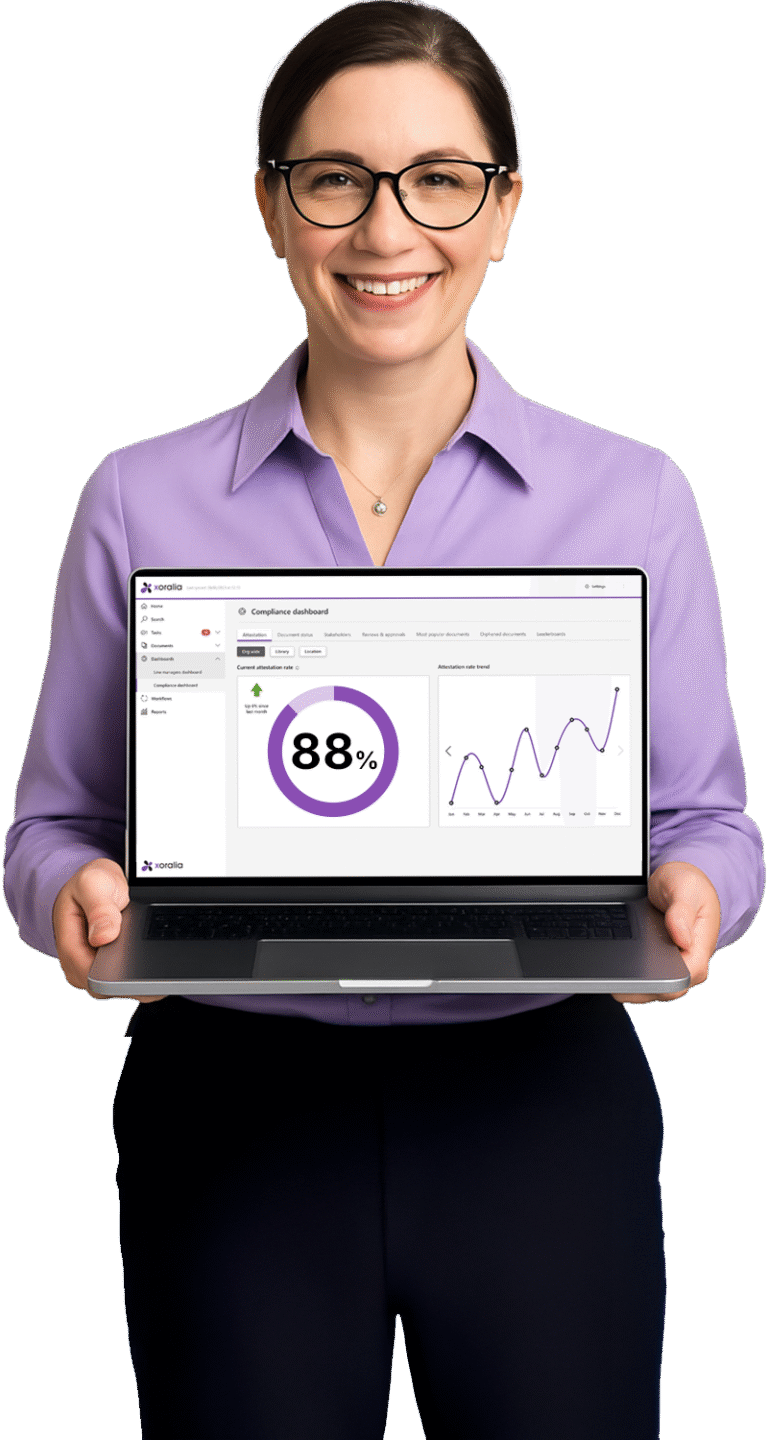 Xoralia is a modern policy management software built for Microsoft 365, SharePoint and Teams. It centralises your policies, automates approvals and lifecycle reviews, and ensures every employee always sees the latest version. This improves compliance and reduces risk.