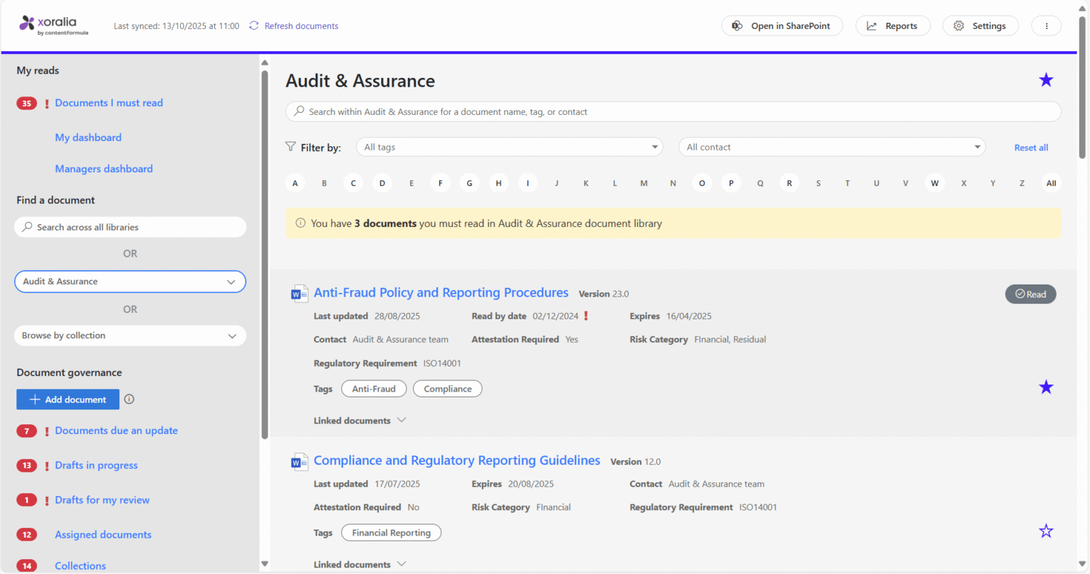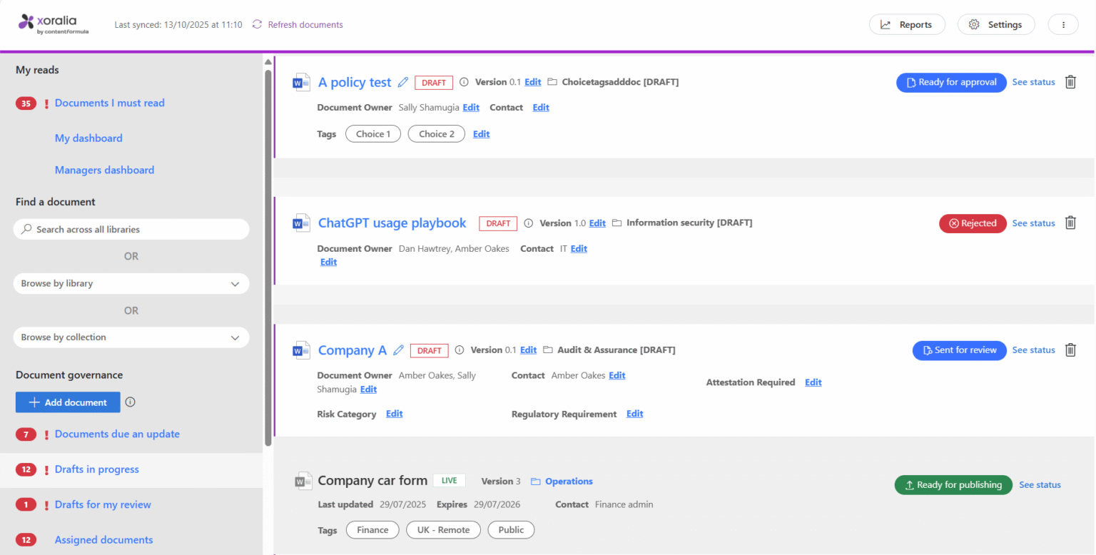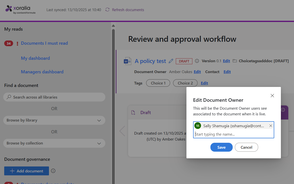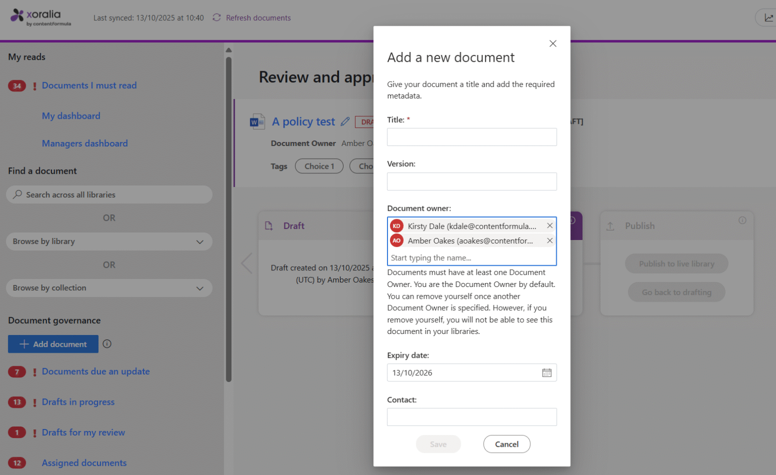 Further alleviate the need for policy managers to access SharePoint directly, from Xoralia you can now modify document owners directly within Xoralia.