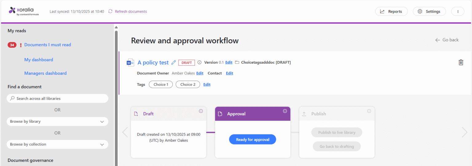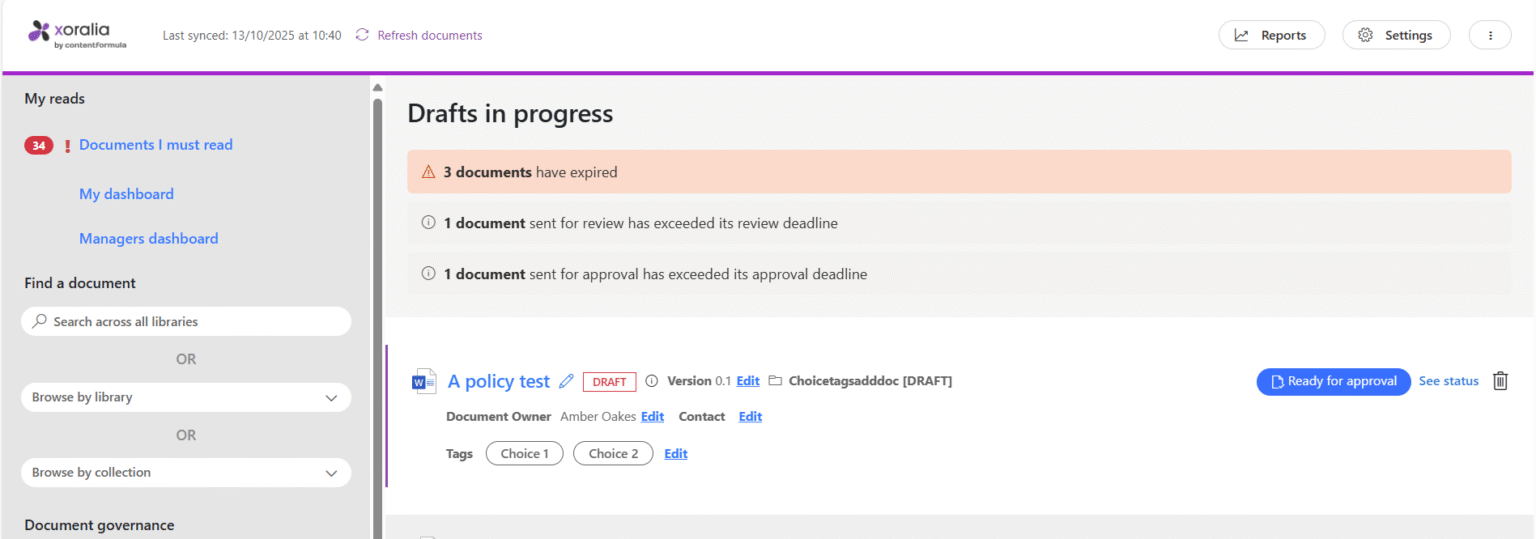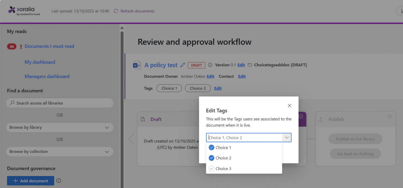 This means all documents added via Xoralia can prompt the document owner to apply Tags; and Tags can be updated.